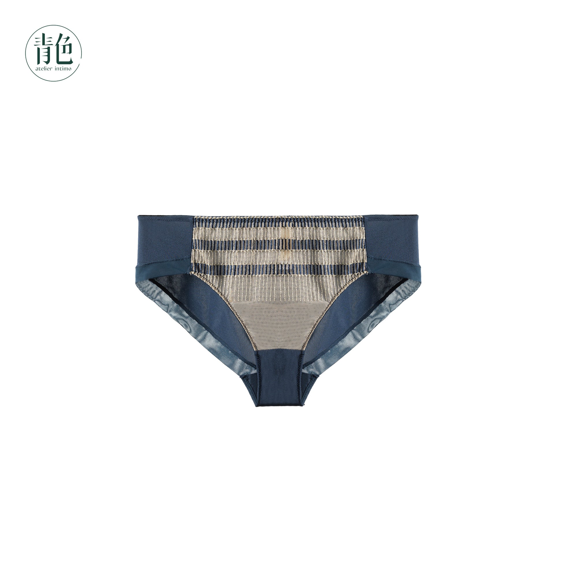 Azure Sea Panties: The front panel is crafted from matching deep navy satin and accented with the blue-and-gold embroidery. The back is made of fully elastic mesh for lightweight comfort and a seamless feel against the skin. Includes a 100% cotton antibacterial gusset.