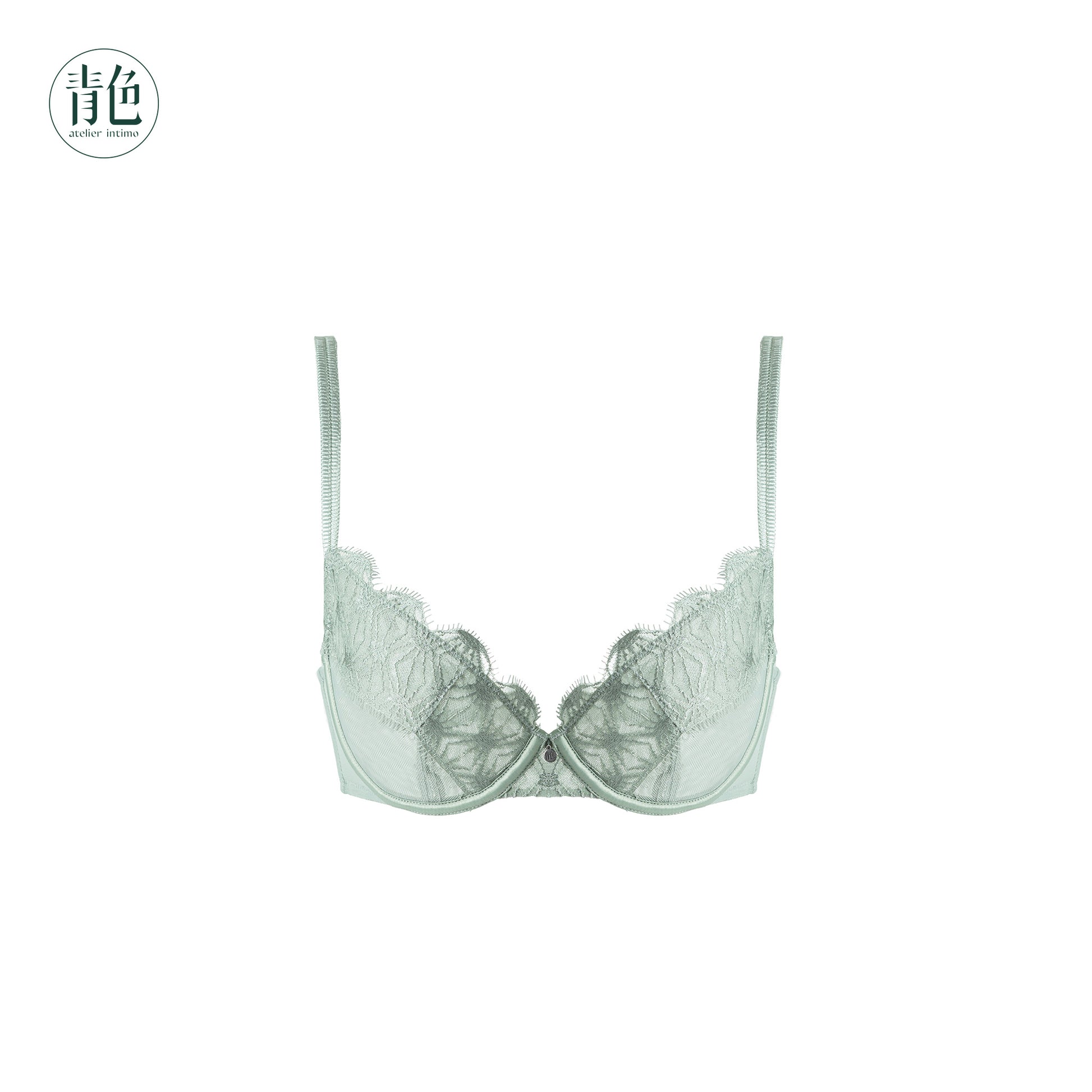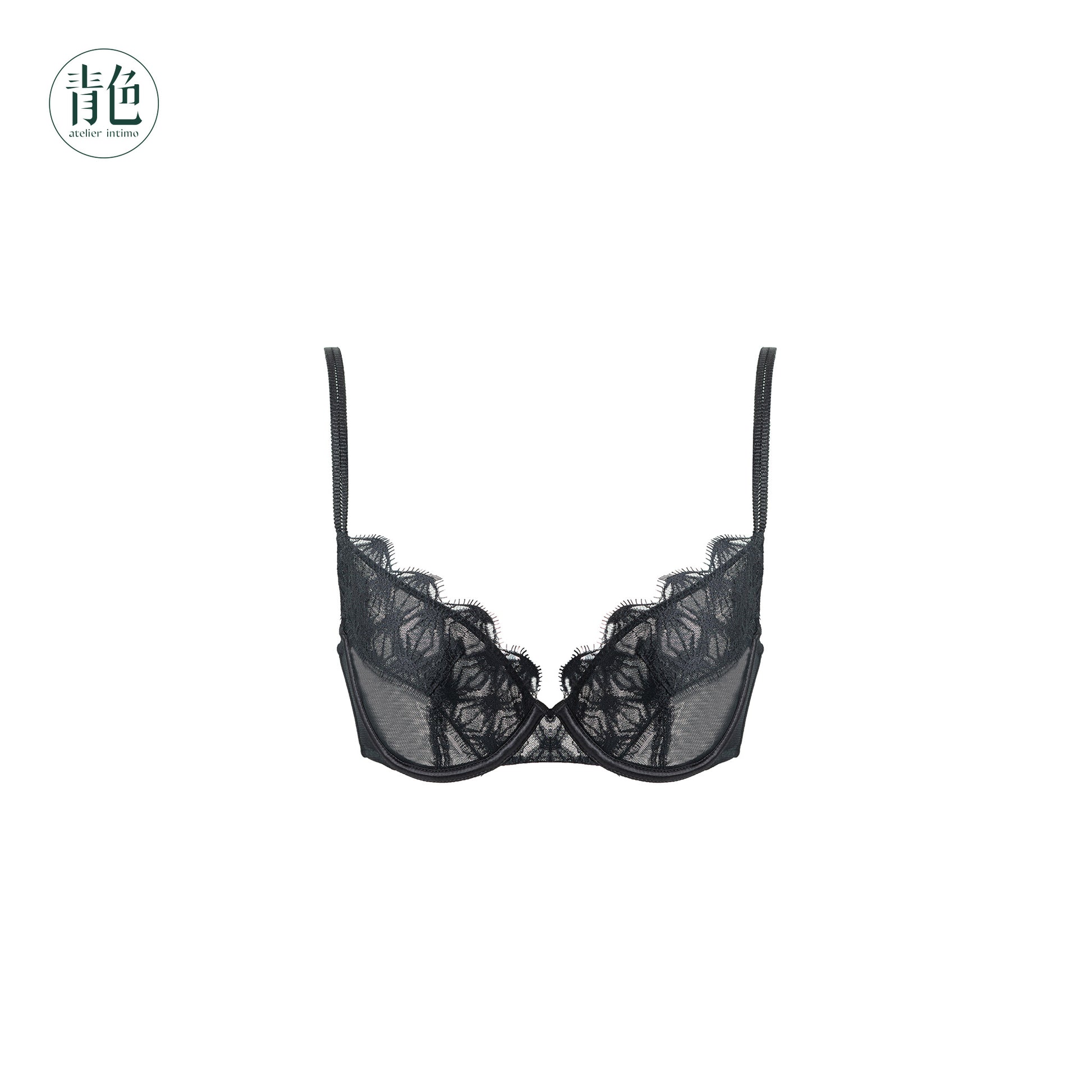 罩杯用精细蕾丝宋锦连续纹样,杯缘列维斯睫毛蕾丝柔化勾勒纹样的线条,古为今用的宋代美学理念。传统中国色的黛黑,及汝窑的天青色。弹力网纱配同色色丁捆碗工艺及双细肩带,隐藏式钛合金记忆钢圈完美贴合。设计和裁剪比例,实用和美感并存。