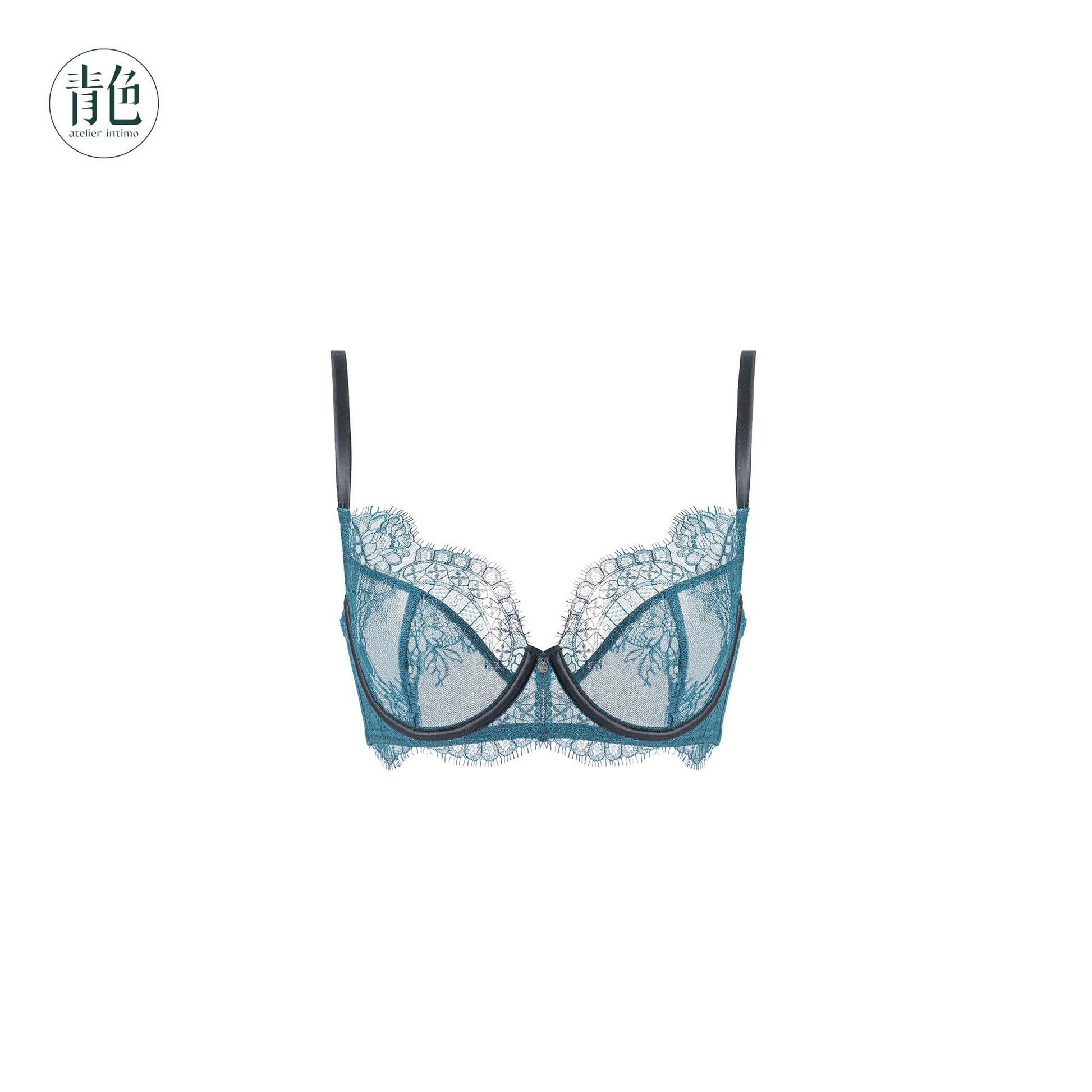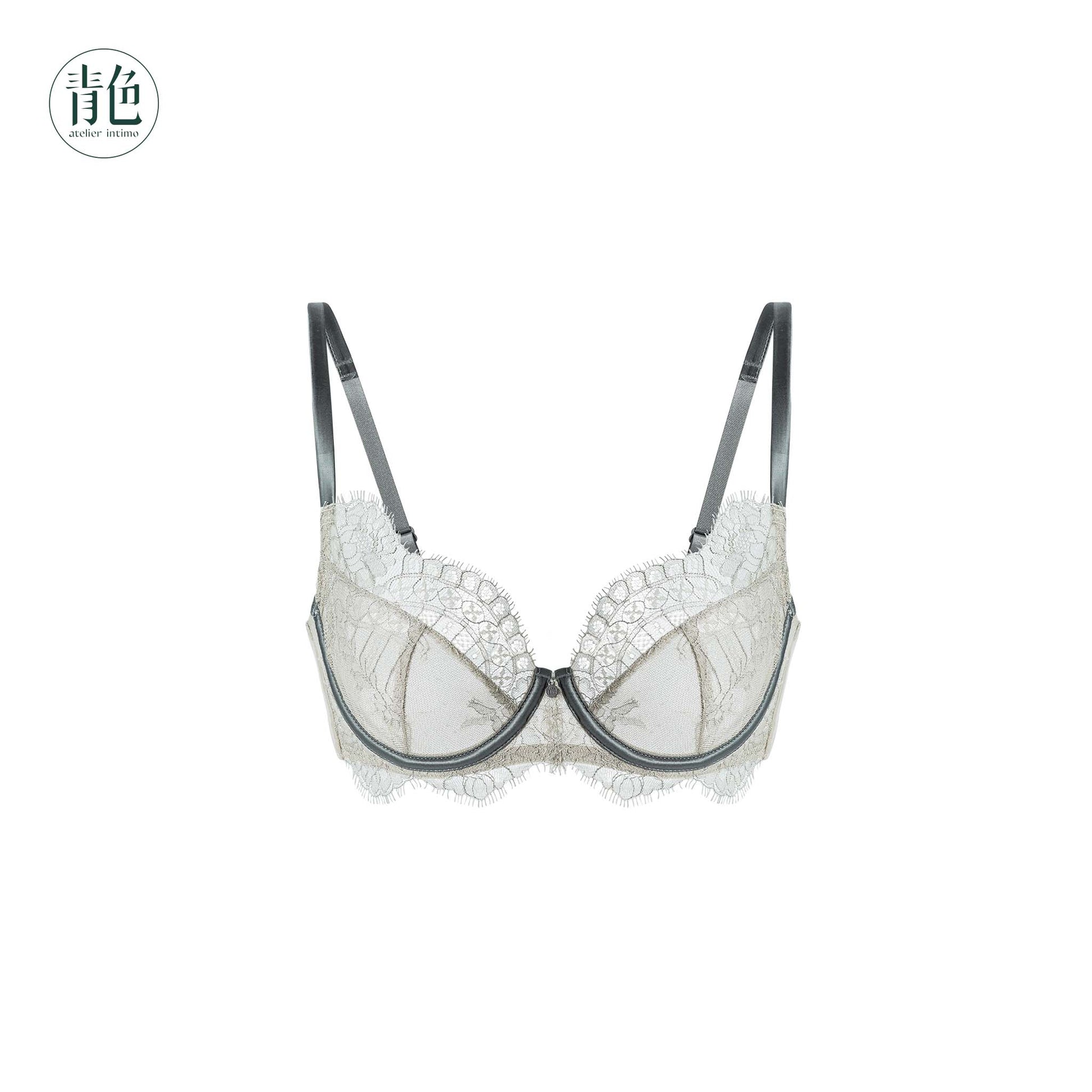 3/4杯罩杯采用法式LEAVERS蕾丝面料搭配撞色色丁面料,睫毛蕾丝精致花边如波浪起伏,飘逸灵动似宋画中的意境:远山如眉黛横卧,一脉清流拉长了月亮的倒影。
