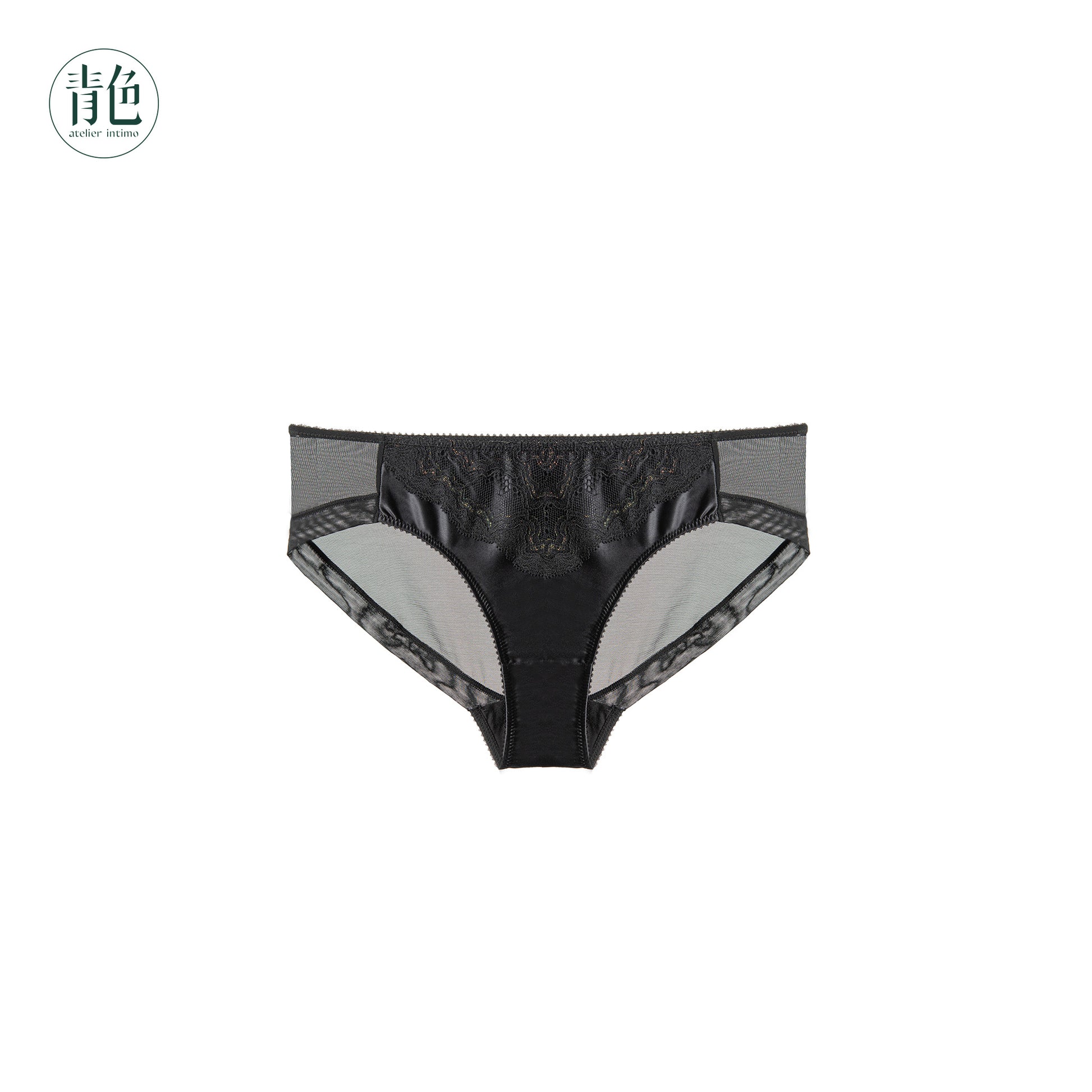 前片色丁拼同款云纹蕾丝,后片全网纱高弹舒适,贴肤无痕。 100%全面抗菌底档。