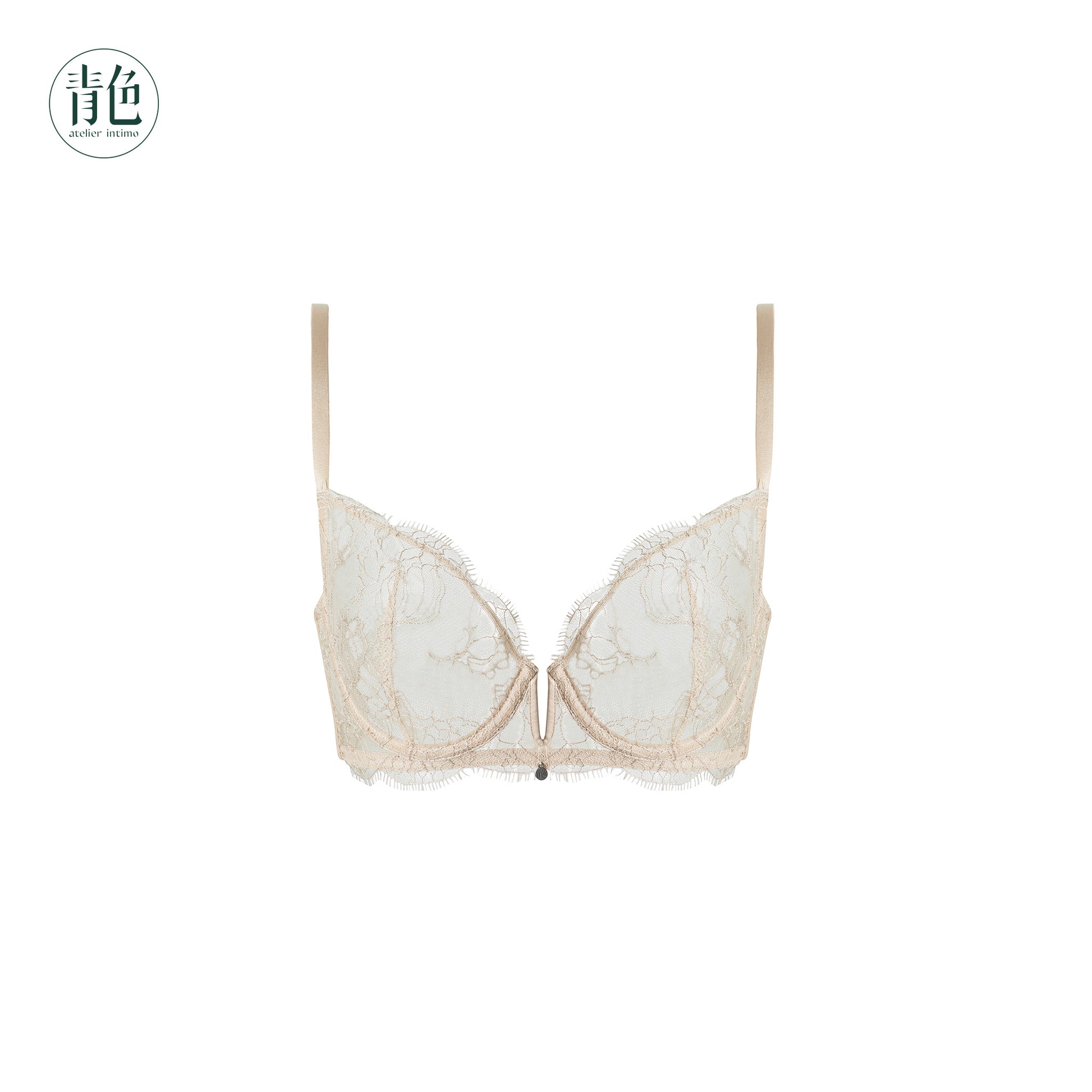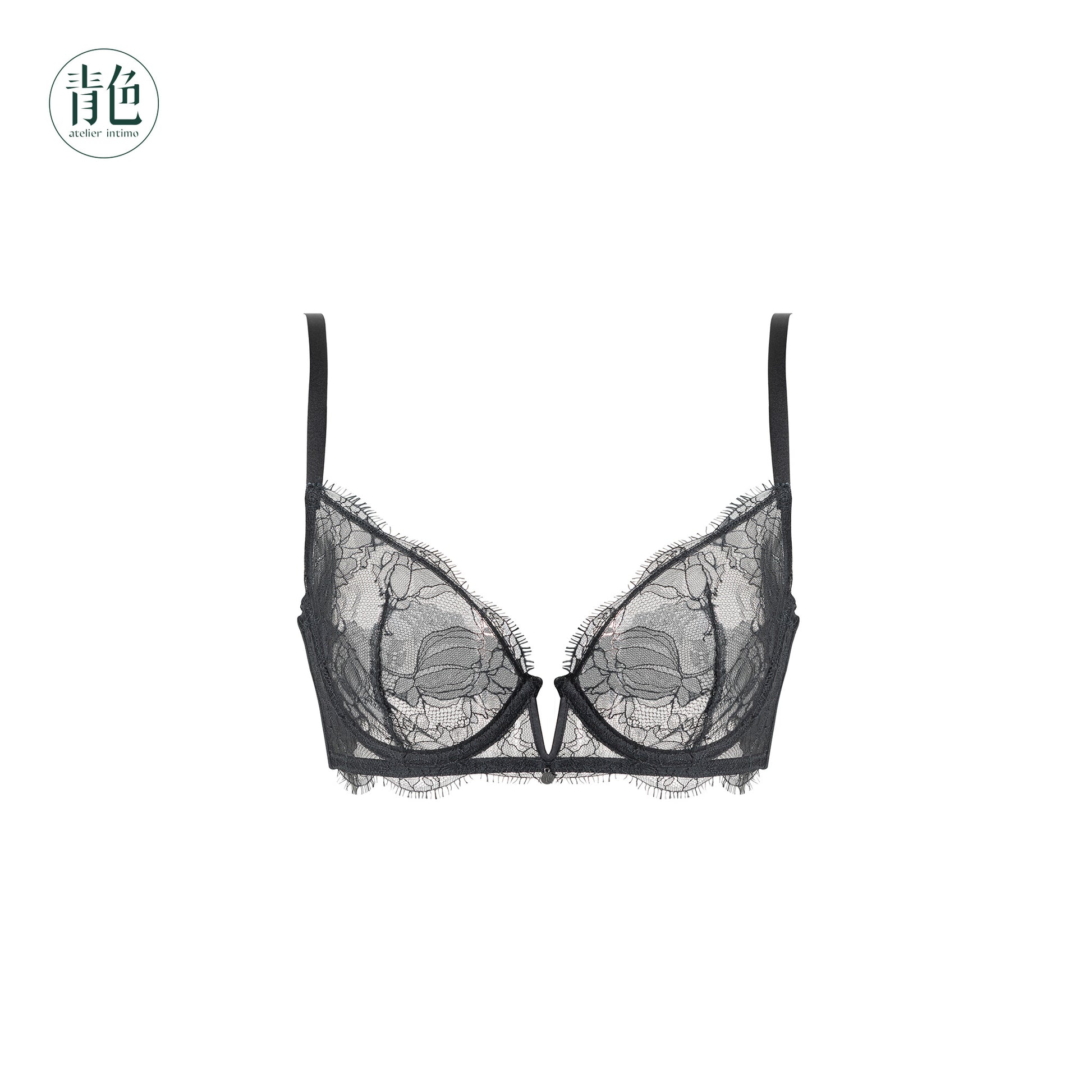 全睫毛蕾丝设计,不规则的边缘如水波曲线,如山峦起伏,灵动婉约。低饱和度颜色取自中国传统色彩:黛黑色;葭灰(裸肤色)。搭配同色肩带及弹力网纱,隐藏式钛合金记忆钢圈完美贴合。设计和裁剪比例,实用和美感并存。