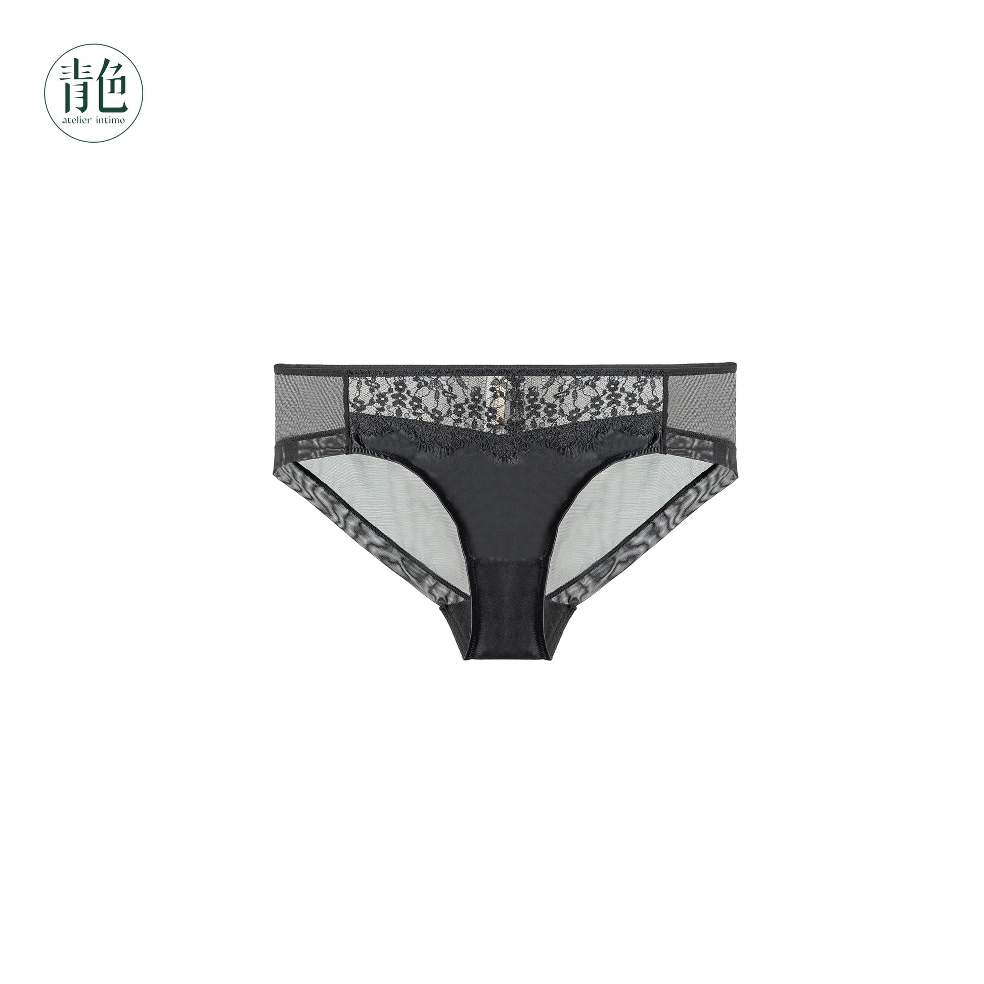 瑶草系列三角裤:前片同色色丁布料两侧拼bra同款睫毛蕾丝,后片全网纱高弹舒适,贴肤无痕。 100%全面抗菌底档。
